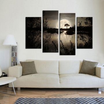 4 Pieces Canvas Prints Wall Art Big Moon over Lake in Dark Forest Modern Canvas Painting Landscape Picture Peaceful Jungle Poster