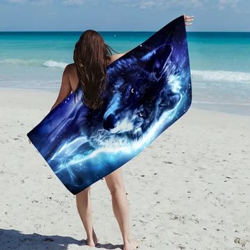 Vibrant Wolf Design Beach Towel