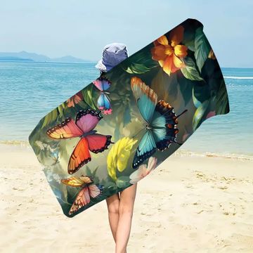 Vintage-Inspired Butterfly Print Extra-Large Microfiber Beach Towel