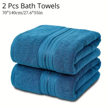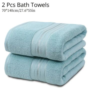 2pc Cotton Bath Towels Set, 70x140cm-27.6x55in, Solid Color