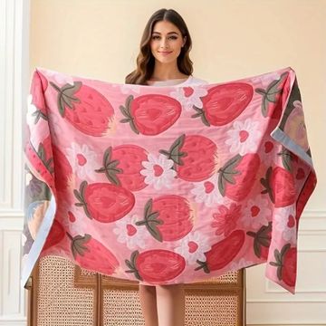 Quick-Dry Strawberry Pattern Beach Towel - Soft Microfiber