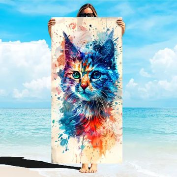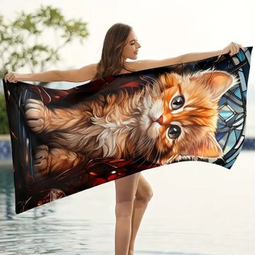 Cute Cat Pattern Beach Towel, Quick Drying Soft Absorbent