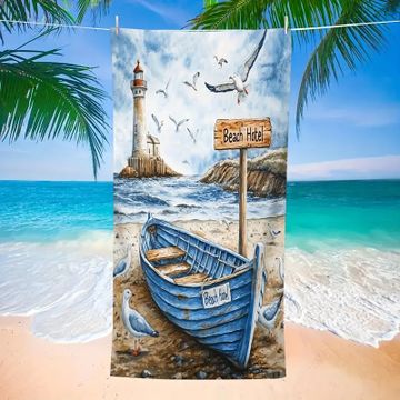 Vintage Lighthouse and Coastal Boat Design Microfiber Beach Towel