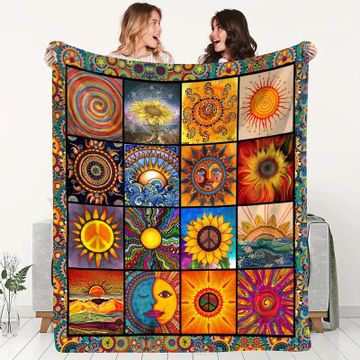 Colorful Mandala Sunflower Throw Blanket - Vintage-Inspired Soft