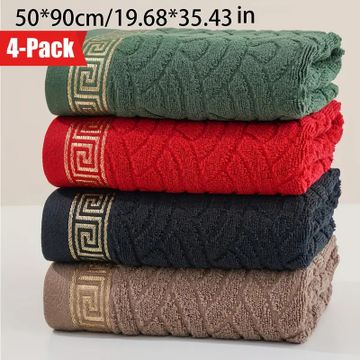 QIBHI Vintage Style 4-Pack Cotton Bath Towels