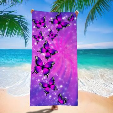 Ultra Soft Microfiber Beach Towel, Purple Butterfly Design