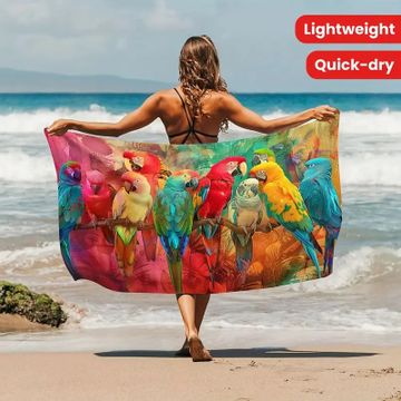 1pc Tropical Parrot Pattern Beach Towel, 55-inch Ultra Soft Microfiber