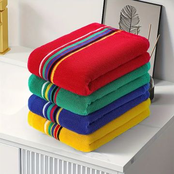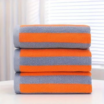 Striped Bath Towel Set, Polyester Towels For Bathroom