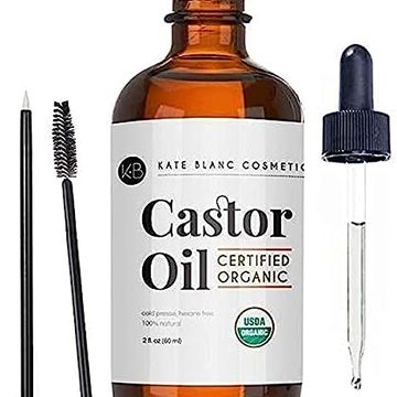 Kate Blanc Cosmetics Castor Oil (2oz), USDA Certified Organic, 100% Pure, Cold Pressed, Hexane Free Stimulate Growth for Eyelashes, Eyebrows, Hair. Skin Moisturizer & Hair Treatment Starter Kit