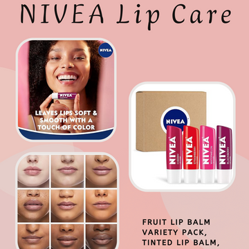 NIVEA Lip Care, Fruit Lip Balm Variety Pack, Tinted Lip Balm, 0.17 Oz, 4 count (Pack of 1)