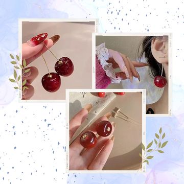 Batulii's online fashion Korean Cherry Earrings for Women Sweet Cherry Dangle Drop Earrings Lovely Fruit Earrings Red Tassel Earrings Jewelry Gift for Girls