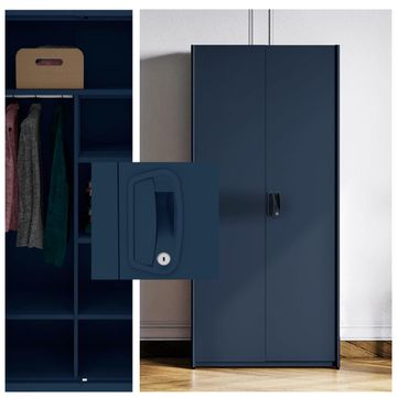 GODREJ INTERIO Almirah Neolite 2-Door Steel Almirah, Cupboard for Clothes (Textured Denim Blue), 1-Year Warranty, 4 Shelves, 1 Locker