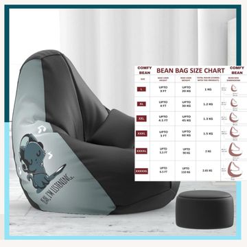 ComfyBean Bag with Beans Filled XXXXL Bean Bag with Free Cushion and Footrest - Official : PrintZen Combo (Matching Color : Printed, Yah I am Listening - Black Grey)