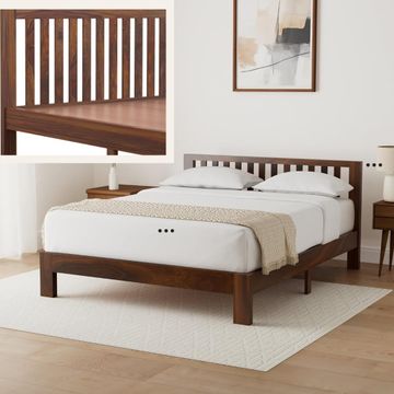 Amazon Brand - Solimo Petra Solid Sheesham Wood Queen Bed (Teak Finish)