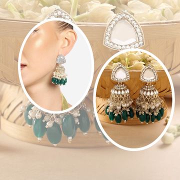 Zaveri Pearls Green Stones Cluster Beads Drop Jhumka Earring For Women