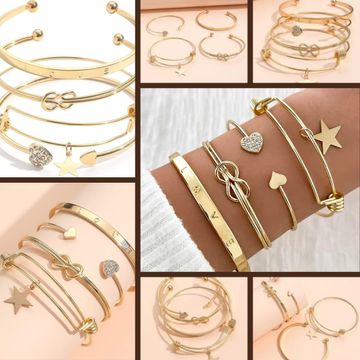Shining Diva Fashion Latest Stylish 4pcs Multilayer Crystal Heart Love Bangle Bracelet for Women and Girls (14757b)