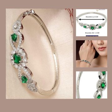 ZENEME 18K Silver Plated Brass Openable Crystal Bracelet Latest Stylish Cuff Bangle with Rhodium Plated American Diamond Cuff Kada Bracelet For Women & Gift for Girls