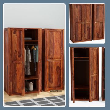 WOODNETIC Sheesham Wooden Wardrobe for Clothes with 3 Door for Home Living Room Almirah Furniture Honey Finish