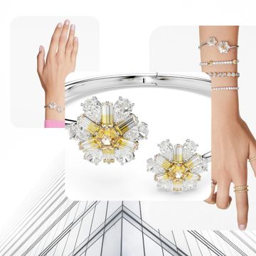 Swarovski Women Idyllia Bangle, Flower, Yellow, Rhodium Plated
