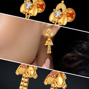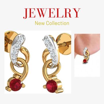 DISHIS 14K(585)/18K(750) Yellow Gold and Daimond Garnet Red Designer Earrings For Women