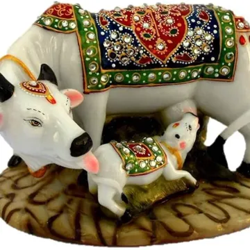 ANGORA CREATIONS Stone Cow And Calf Showpiece, Standard, Multicolour(Pack Of 1)