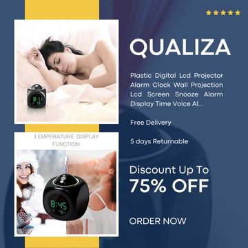 Qualiza Plastic Digital Lcd Projector Alarm Clock Wall Projection Lcd Screen Snooze Alarm Display Time Voice Alarm Led Back Light, Multicolor, Inch - 10.5 Cm