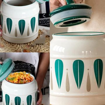 UMAI Ceramic Jar for Kitchen Storage with Lid | Airtight Ceramic Container | Multipurpose Kitchen Storage Jars and Containers | White | Printed (1 Jar) (2500ml (Green)) 55% off