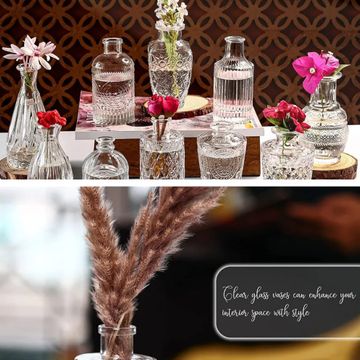 ABOUT SPACE Glass Bud Flower Vase – Pack of 10 Clear Glass Centrepiece for Mini Flowers-Sturdy Textured Drop Shaped Antique Collections for Wedding Decorations & Table Top Decor for Home,Restaurants Amazon's Choice 50+ bought in past month