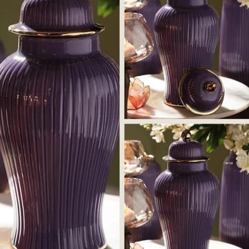 Pure Home + Living Purple Ribbed Ceramic Urn with Lid - Small