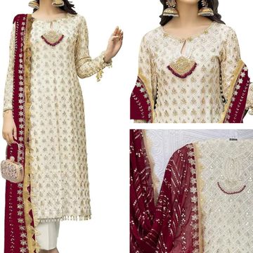 RUDRAPRAYAG Women's Embroidered Work Georgette Fabric Semi Stitched Straight Salwar Suit With Dupatta