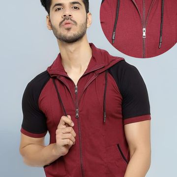 Black Collection Color Block Men Hooded Neck Half Sleeves T-Shirt