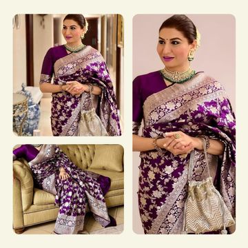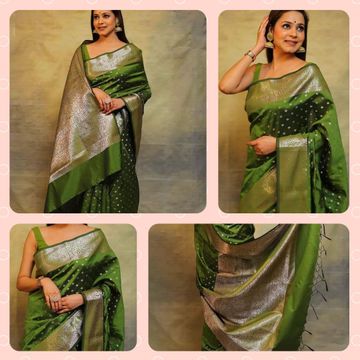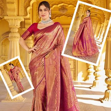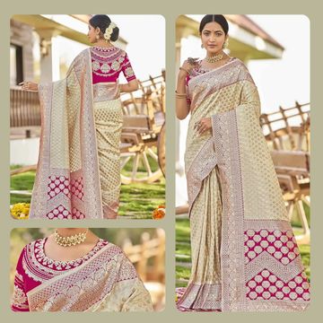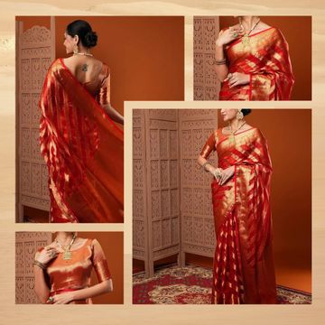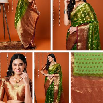 AKHILAM Women's Organza Banarasi Saree With Unstitched Blouse Piece (17ALEKHA1701)