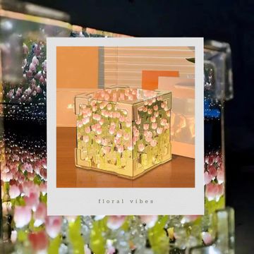 ROMJ DIY - Do It Yourself - Tulip Cube Mirror Lamp, 30 Flowers LED Decorative Lamp, 2 in 1 Mirror & Table Ornaments for Bedroom Livingroom Desktop Decor Birthday Gift (Multi Color)