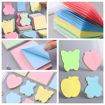 Wolpin Sticky Notes 600 Sheets Cute Shapes (6 Shapes x 100 Sheets Each) Self Adhesive for Reminders, Notes, School, Study, Office Organizing Memo Meetings Pad Multicolors