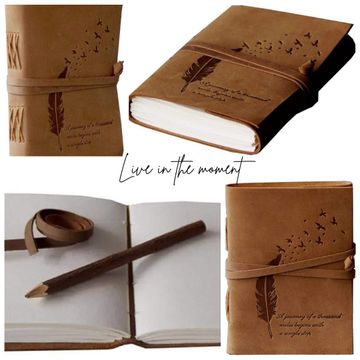 CAVALO - Be Unique Leather Diary Embossed With Leaf of Tree & a Quote Antique Handmade Leather Bound Diary cum Notepad for Men and Women Plain Paper of 5×7 Inch Size 240 Pages Perfect for Travel Diary