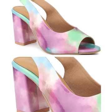 Women Blue Printed Peep Toes Block Heels
