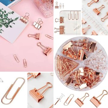 Kiwilon Paper Clips and Binder Clips Set, Metal Assorted Sized Binders with Push Pins, Cute Office Supplies for Desk, Desk Accessories I Stationery Essentials for Office & Home (Rose Gold)