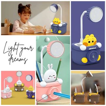 WISHKEY Plastic 3 in 1 USB Chargeable Led Light Table Night Lamp for Kids Bedroom with Pencil Sharpener & Pen Holder Stand for Girls & Boys (Multicolor)