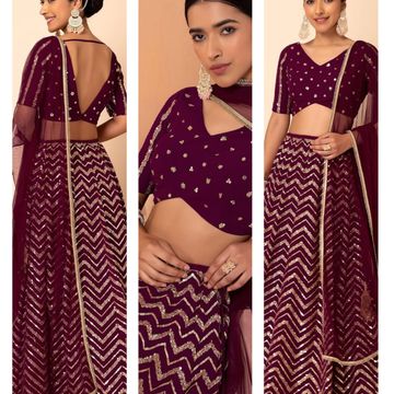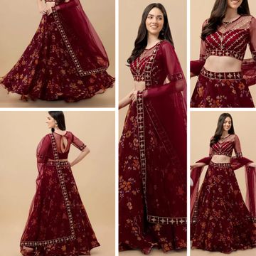 Monrav Women`s Net Embroidered Semi Stitched lehenga Choli