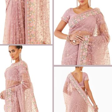 b bella creation Embroidered Bollywood Net, Art Silk Saree_BZ_Seqnc- Square Onion