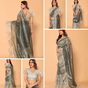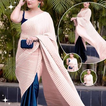 Women's Pleated/Crushed Plain Chinon Saree