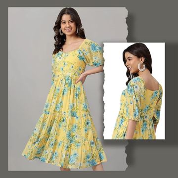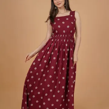Glomee Women Western Pleated Dress