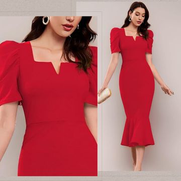 Sheetal Associates Women's Half Sleeve Sweetheart Neck Bodycon Casual Maxi Dress