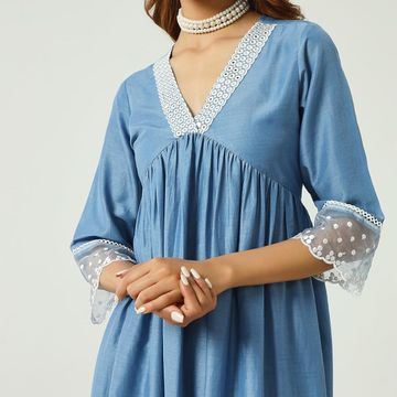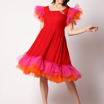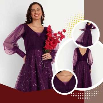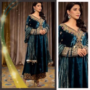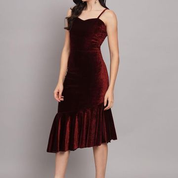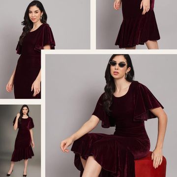 Velvet A-Line Fish Cut Ruffle Bottom Stylish Outfit