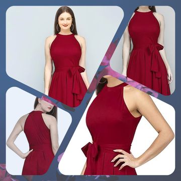 Globus Women Halter Neck Stretchable Solid Maxi Bodycon Party Dress