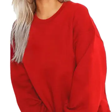 Loose Fit Round Neck Loopknit Sweatshirt (Red Color)