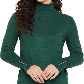 Madame Women Solid Bottle Green Sweater