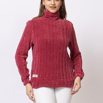 ARISH Cozy Knit Polyester Turtleneck Sweater, Long Sleeves, Beetroot