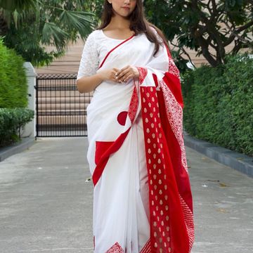 Atrangi Saree - Red Elegance, Sustainable 100% Cotton Saree