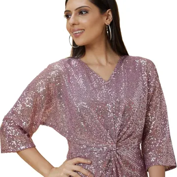 Half Sleeves Shiny Velvet Stylish Outfit